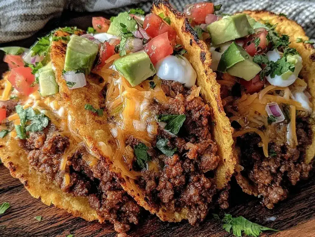 Pro tip: If you want extra melty cheese, pop the filled tacos back in the oven for 2 minutes before serving. Also, use a slotted spoon when serving beef to avoid soggy shells from excess liquid. This method keeps the crunch intact and your tacos perfectly crispy every time.